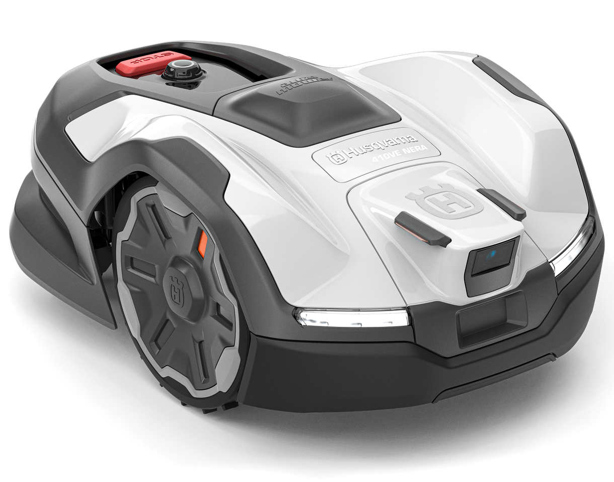 Husqvarna Automower® 410VE NERA – egy vezeték nélküli robotfűnyíró, amely innovatív funkciókkal rendelkezik, és tökéletes eredményt biztosít akár 1 500 m²-es gyepfelületen is. Az EdgeCut funkció tisztán tartja a gyepszegélyeket, és minimálisra csökkenti a nyírásra fordítandó időt és erőfeszítést. A beépített műholdas technológiánknak köszönhető virtuális határok rugalmas és megbízható telepítési lehetőségeket biztosítanak.