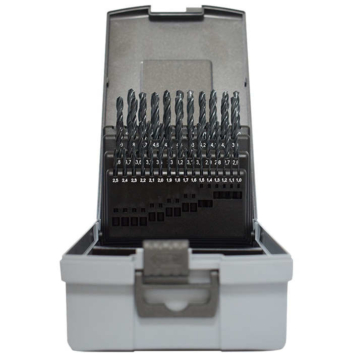 Jobbos spirálfúrók nagy teljesítményű HSS gyorsacélból, N típusú, 118°-os fúrócsúcs, átmérőtűrés h8, DIN 338 szabvány szerint. Görgősen hengerelt spirál, fekete színű.