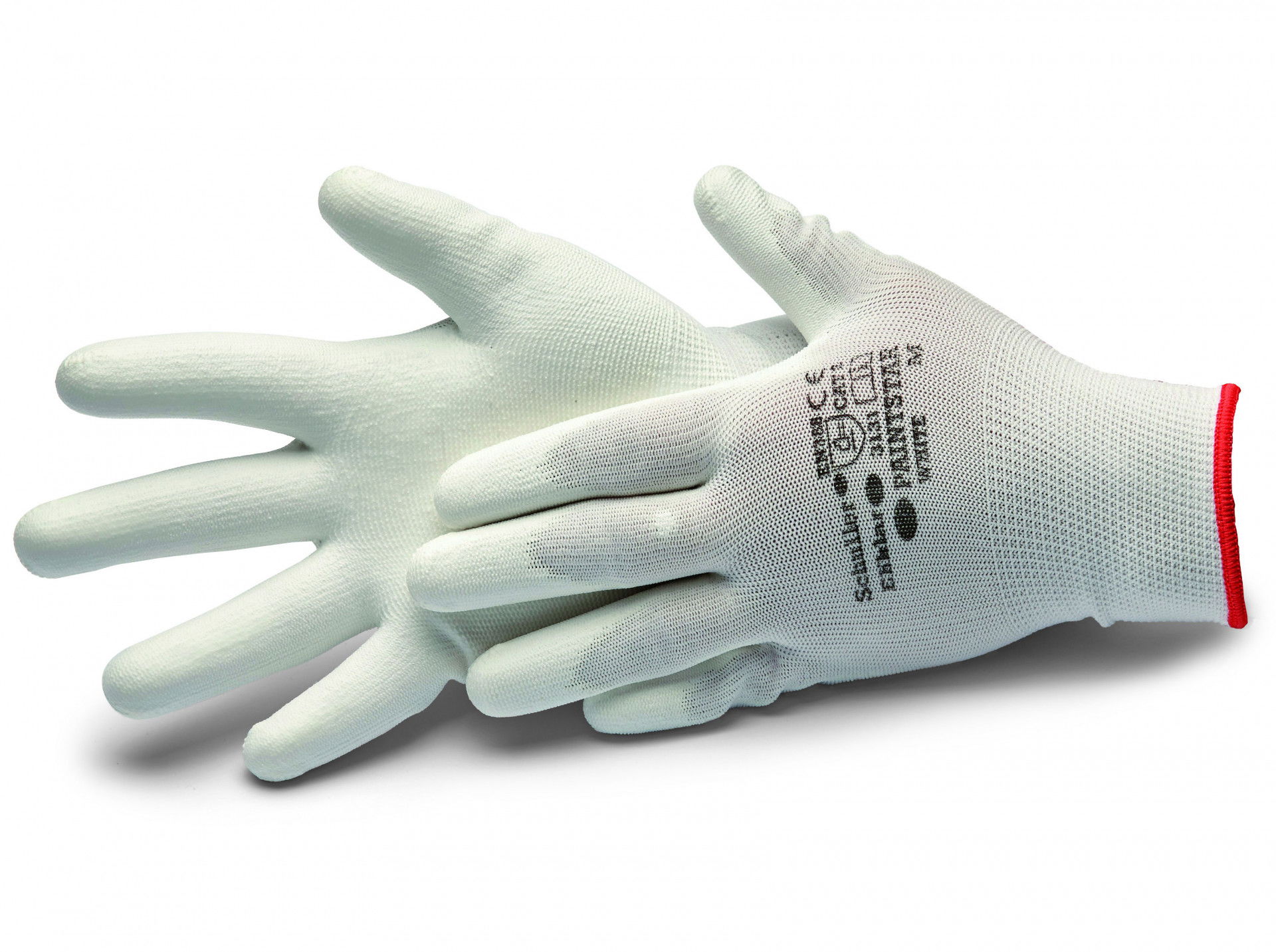 - Finomkötésű kesztyű PU bevonattal, fehér.