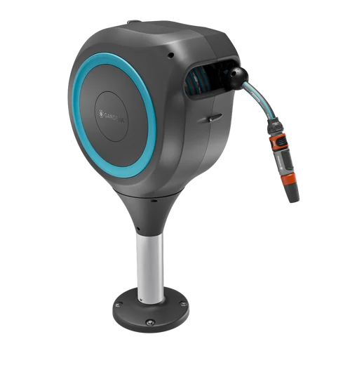Használatra kész 20 m hosszú kiváló minőségű GARDENA tömlővel, 11 mm-es csatlakozótömlővel, OGS alkatrészekkel és tisztító locsolóval.
